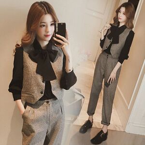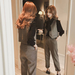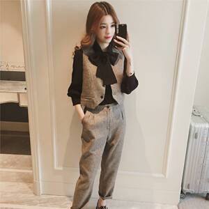 新款秋冬时尚休闲小个子显高气质三件套韩版洋气网红小西装套装女