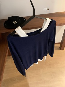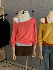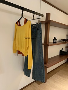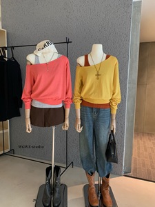 WGWE7032广州十三行女装2025秋装新款斜肩长袖针织衫挂脖背心套装