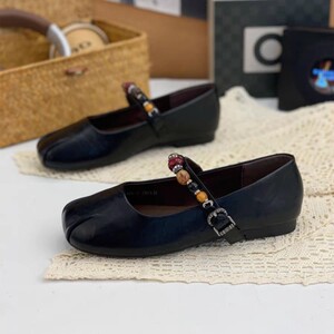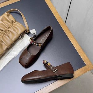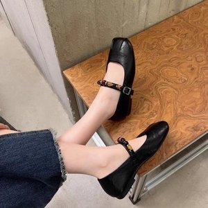 秋季时尚方头单鞋女2025年新款学院风百搭真皮法式玛丽珍平底