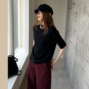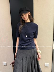 JVV十三行2025年秋季新款气质短袖直筒休闲舒适羊毛针织衫女51097