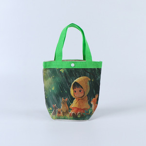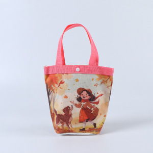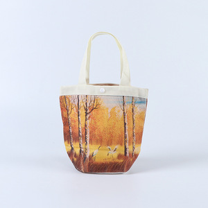 现货创意卡通圆筒包高级感印花手提袋帆布包上班空白便携便当包