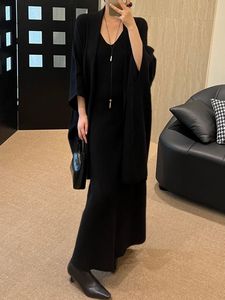 蝙蝠袖针织套装女秋冬新款法式慵懒外搭披肩斗篷毛衣连衣裙两件套