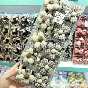 韩式珠光闪钻min英文字母咖色格子布艺花朵儿童发夹少女边夹发卡