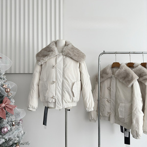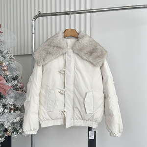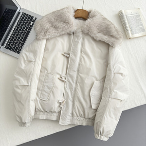 2025实拍白色大翻毛领女冬季保暖白鸭绒牛角扣面包服
