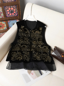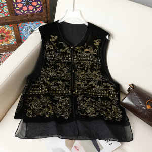 批发2025年秋季新款中式国风重工定位绣花丝绒马甲民族风坎肩背心