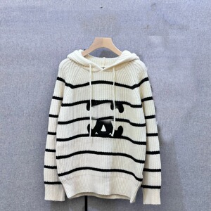 CE家新款针织帽衫24秋冬撞色条纹宽松慵懒风韩系氛围感百搭时髦女