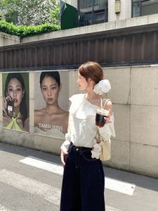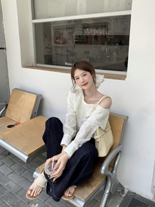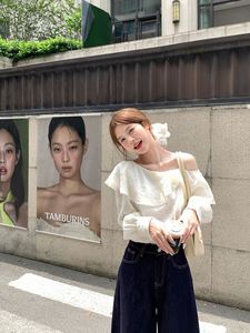 法式赫本风露肩长袖衬衫女秋季设计感小众别致绝美荷叶边小衫上衣