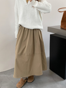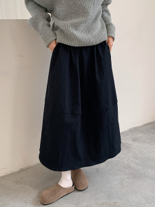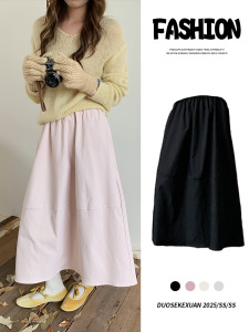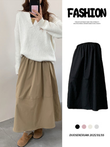 黑色复古高级质感2025秋新款遮跨显瘦百搭高腰宽松半身裙