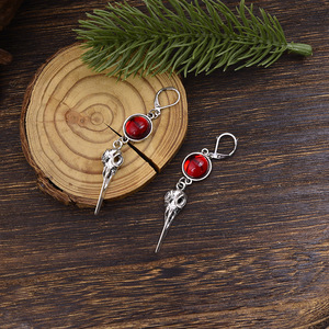 跨境时尚潮流万圣节神秘乌鸦吊坠耳环个性夸张高级感红宝石耳饰品