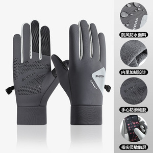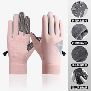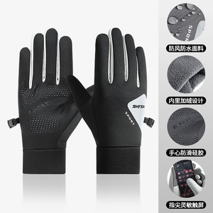 冬季保暖防滑触屏手套骑行男女加绒防风防泼水电动车秋冬户外登山