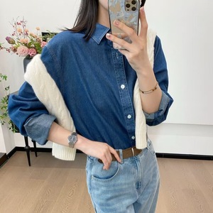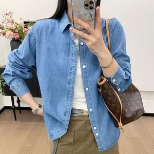 090502早秋新款2025年男女同款开衫衬衣polo外套刺绣洗水牛仔衬衫