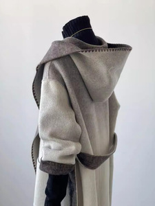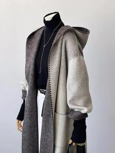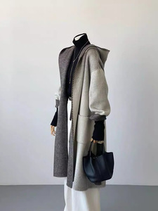 日系轻奢设计师款双面羊绒连帽大衣女2025秋冬季灰色渐变长款外套
