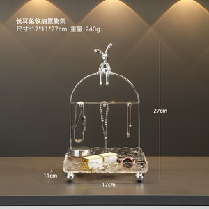实木玄关化妆品收纳盒桌面梳妆台置物架香水口红高级护肤品首饰盒