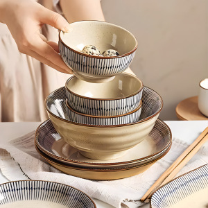日式家用陶瓷碗釉下彩蓝雨餐具全套乔迁礼高颜值米饭碗菜盘子套装
