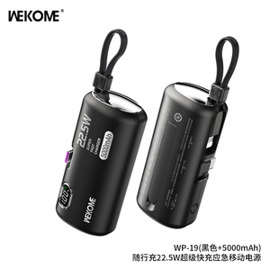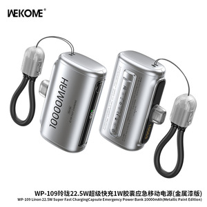 WEKOME移动电源快充带线一万毫安 便携迷你胶囊充电宝飞机可携带