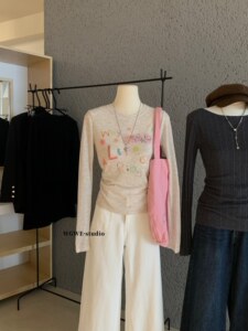 WGWE6963#广州十三行女装2025秋装新款复古修身显瘦打底衫长袖T恤