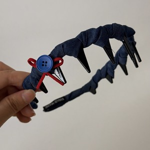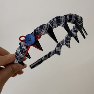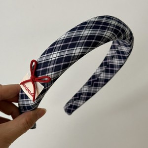 韩系复古藏蓝格纹红蝴蝶结纽扣发箍新款洗脸碎发压发捆头箍发饰