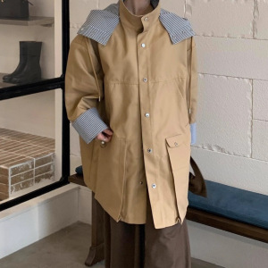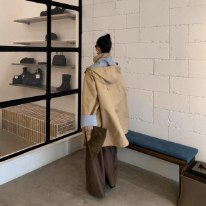 2025秋季两面穿撞色连帽复古大衣小个子法式名媛气质风衣外套女