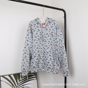 2025早春时尚新款Supr小碎花印花拉链连帽卫衣加绒外套绒衫上衣女
