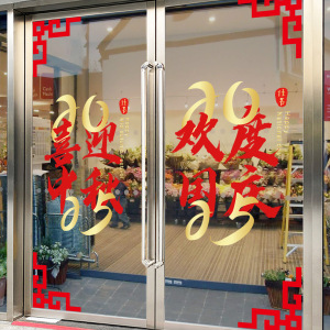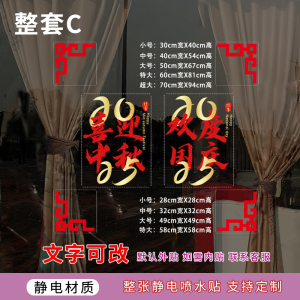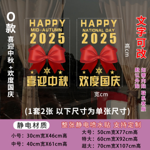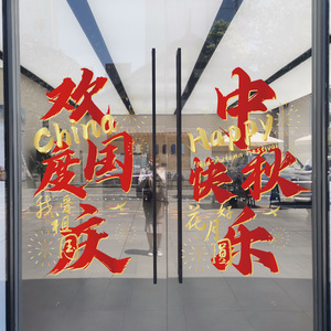 中秋国庆节玻璃门贴纸喜迎中秋国庆快乐物业公司4S店银行氛围布置