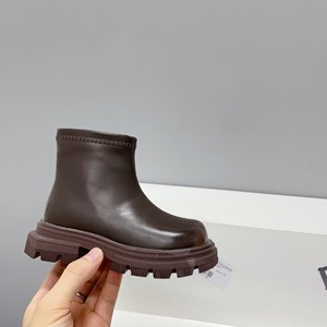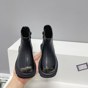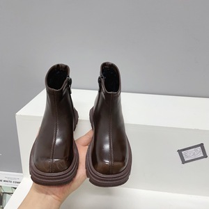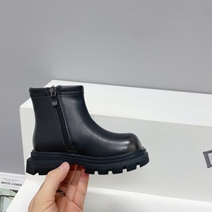 擦色磨砂皮儿童休闲风加绒保暖小棉靴2025年冬款男女童小高跟皮靴