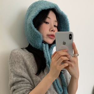 软糯多色圈圈纱可爱系带套头帽冬天韩国毛绒绒氛围感针织渔夫帽女