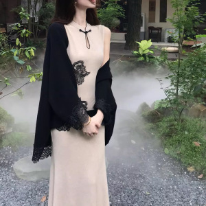 2025初秋新中式无袖旗袍针织连衣裙长裙开衫两件套套装气质裙子潮