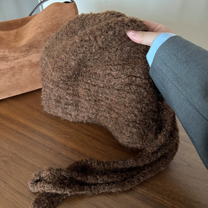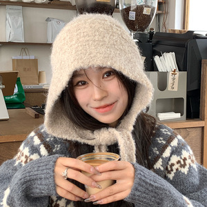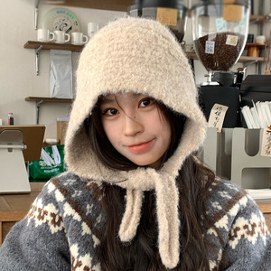2025秋冬季巴拉克法帽韩版时尚百搭保暖系带毛线帽子女防寒护耳帽