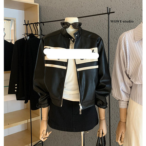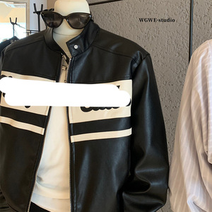 WGWE7042美式复古机车风皮衣外套宽松夹克上衣
