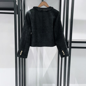 法式小众 2025秋冬甜美褶皱花边圆领小香风花呢外套长裤套装25795