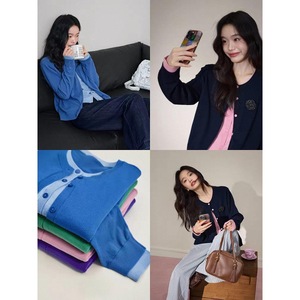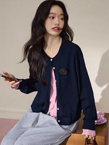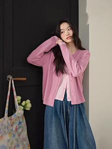 粉色撞色假两件针织衫开衫外套25早秋穿搭新款女毛衣宽松上衣