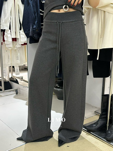 LIMO 秋季新款休闲百搭抽绳系带垂感阔腿直筒罗纹腰头空气感长裤