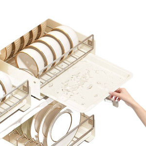 不锈钢橱柜拉篮厨房抽屉式沥水架免打孔抽拉可伸缩碗碟收纳架