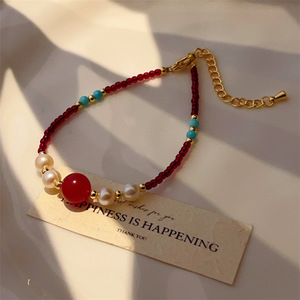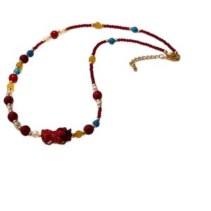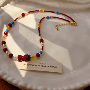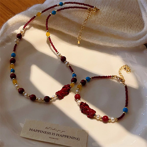 原创设计进财貔貅石榴石淡水珍珠颈链手链套装秋冬新款可延长饰品