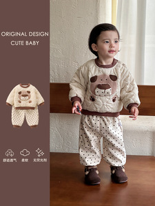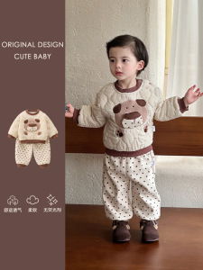 儿童加绒套装秋冬装2025新款宝宝卫衣裤子冬季婴儿夹棉衣服两件套