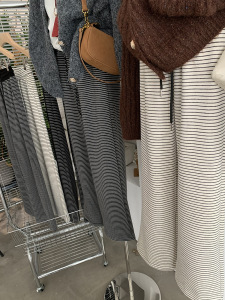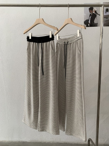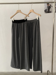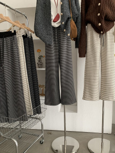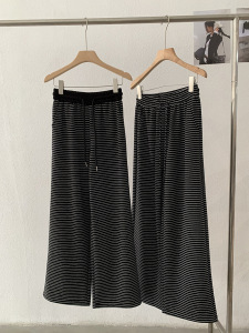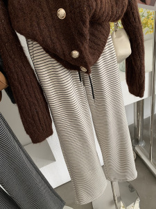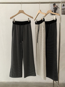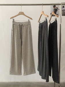 欧玛莱 条纹针织直筒裤女秋季新款高腰系带休闲裤百搭阔腿裤 4749
