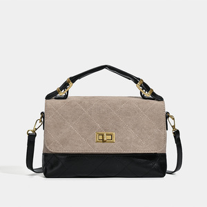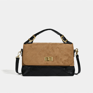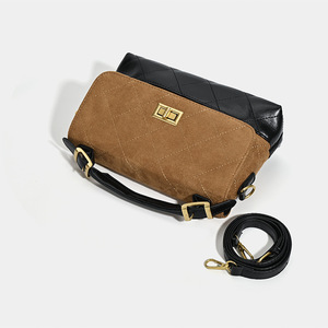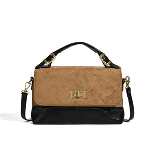 磨砂复古菱格手提小方包女式2025新款跨境欧美百搭拼色单肩斜挎包
