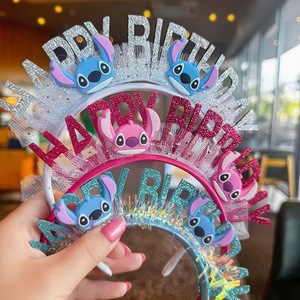 跨境热销史迪仔儿童生日帽happybirthday生日快乐发箍派对头箍