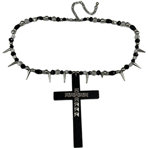 欧美跨境暗黑风重工铆钉串珠十字架项链女小潮流嘻哈亚文化锁骨链