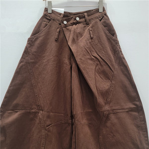 美式高街不规则小众设计直筒牛仔裤女新款宽松复古水洗潮流阔腿裤