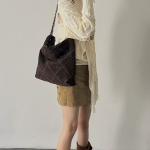 网红同款女包铆钉菱格链条腋下包高级感小香风磨砂牛皮单肩托特包