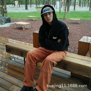 海外服装 新款潮牌Jac经典织带小刺绣字母拉链开衫连帽卫衣(原标)