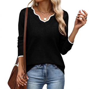 跨境亚马逊独立站秋冬休闲套头女士毛衣简约大气纯色针织打底衫女