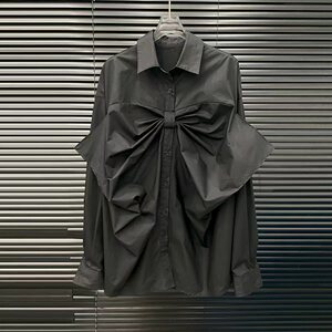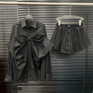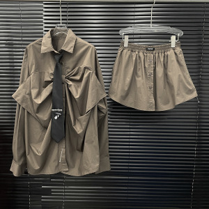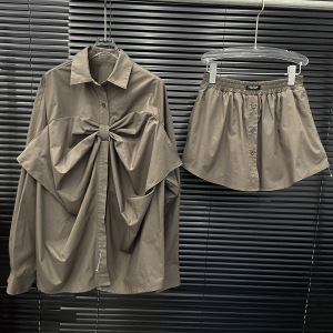 2025早秋新款小众复古一体大蝴蝶结设计中长款廓形衬衫+短裙套装