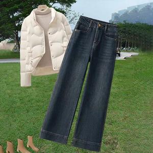 牛仔阔腿裤女2025加绒加厚秋冬季高腰显瘦不臃肿直筒休闲长裤