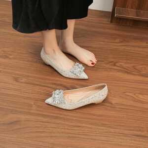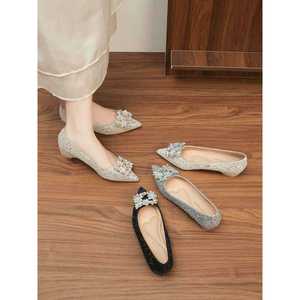 6388E-023优雅贴花内增高高跟鞋亮片钻水晶主纱婚鞋新娘结婚礼服