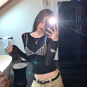美式T恤女2025秋季新款修身显瘦个性扭结拼接设计感显瘦时尚上衣