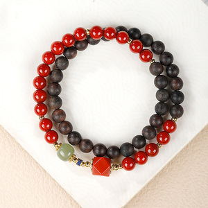 天然降真香文玩手串男南红玛瑙半山半水手链女生和田玉转运珠手饰