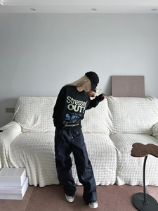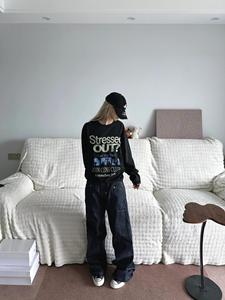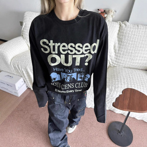 大码vintage美式复古做旧字母秋季新款宽松纯棉胖mm长袖T恤女上衣