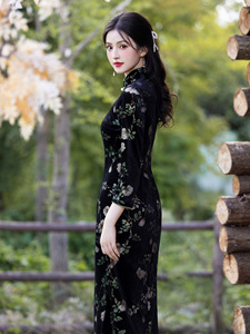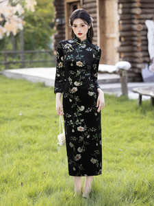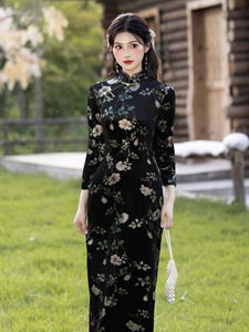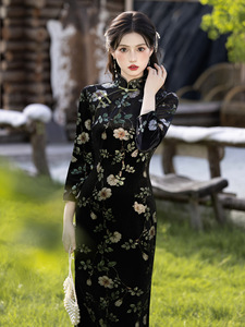 中式绝美旗袍高端大气上档次改良复古民国风2025新款秋季长袖显瘦